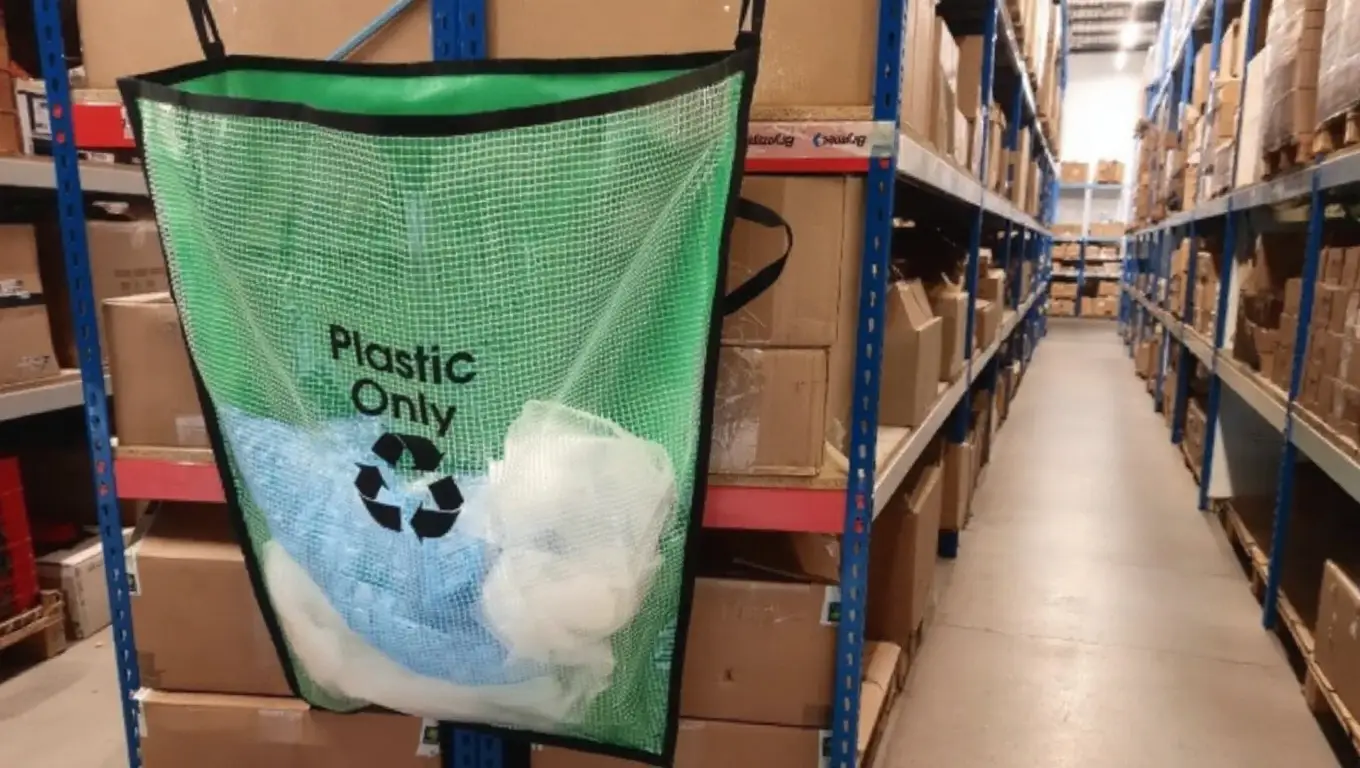 Reusable waste handling systems can also help reduce reliance on disposable plastic liners or single use waste bags. Durable solutions such as rack end waste sacks allow warehouses to manage packaging waste without introducing additional single use materials.