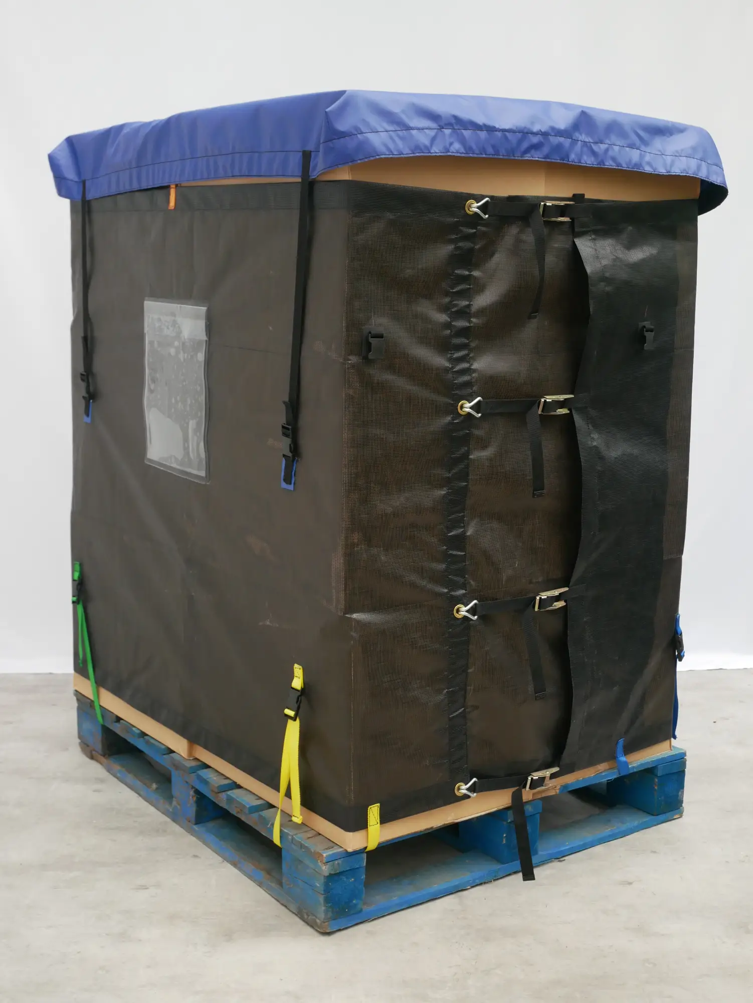 Palband delivered a tailored system built around our Reusable Pallet Wraps. The wraps use tough, coated mesh for strength without excess weight, with adjustable sections to suit mixed carton heights and a waterproof lid to protect sensitive components in poor weather. Colour coding supports quick segregation by route, while integrated document wallets keep delivery notes secure and visible. The fastening layout is simple and consistent, so pallets can be secured in seconds and released just as quickly at goods-in, ready for back-haul and reuse.