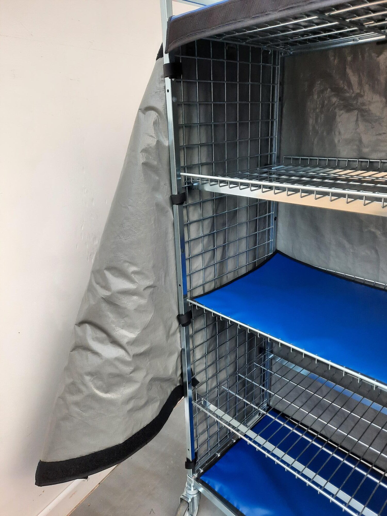 Our insulated trolley covers can be customised to suit any size or shape of trolley, with a variety of options for fabric and insulation types to regulate temperature and protect sensitive goods during storage and transport. Ideal for chilled, frozen, or heat-sensitive items, they help maintain consistent conditions and reduce thermal shock in transit.